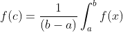 The Fundamental theorem leads into the Mean Value theorem for integrals. This is another method which can be used to find the integral of a function. On any graph with the domain [a,b] there are points on the y axis, [f(a),f(b)] There must be a point between them on the graph, called f(c). Using f(c) and the difference between b and a to make a rectangle, we are able to find the integral of the function once again. There is an image of my personal notes, the important part is the graph that shows where f(c) would go.  and  are the two important functions we use from this theorem. f(c) is found by averaging f(a) and f(b).
